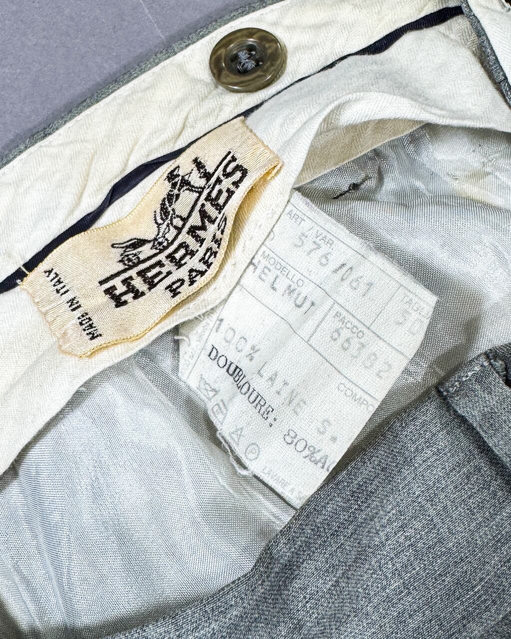 薄手なウールは上質で柔らかくエルメスらしいラグジュアリー感を演出しています。ポケット部分とジップに同系色の糸でパイピングを施した細部までこだわり抜かれた1本。
