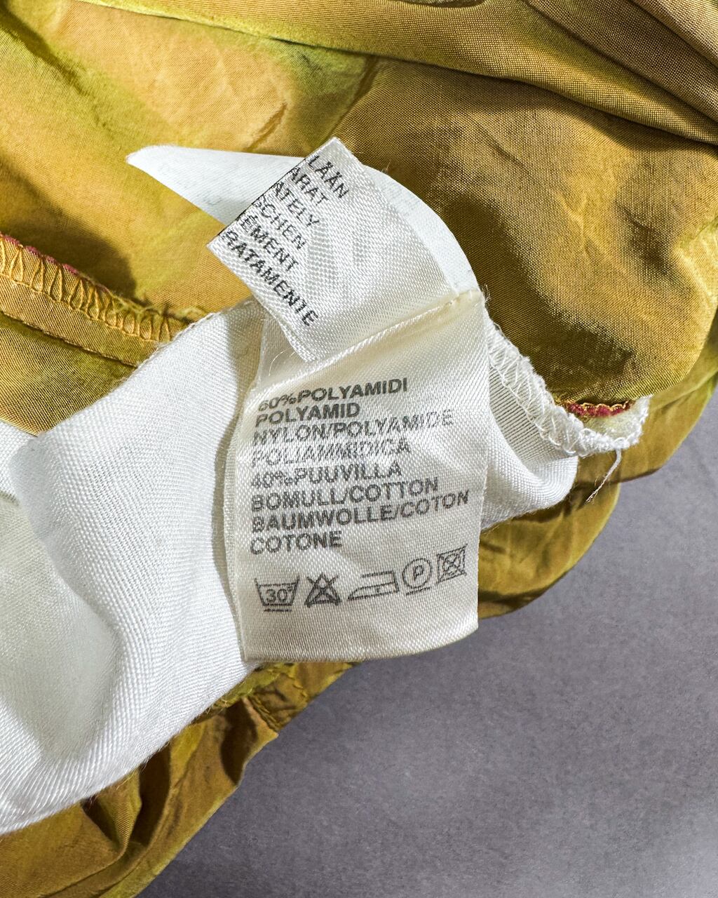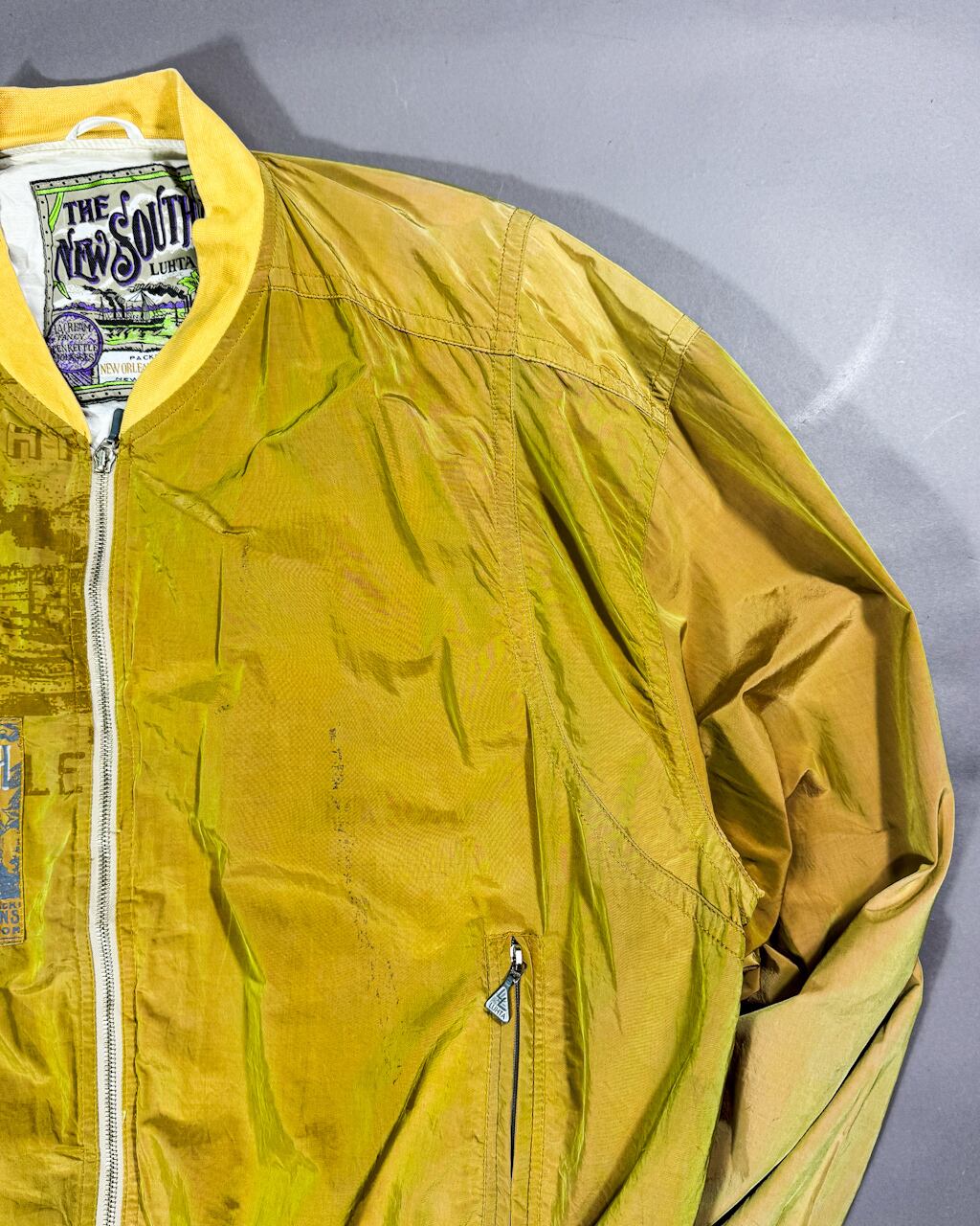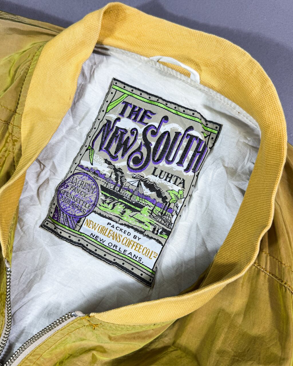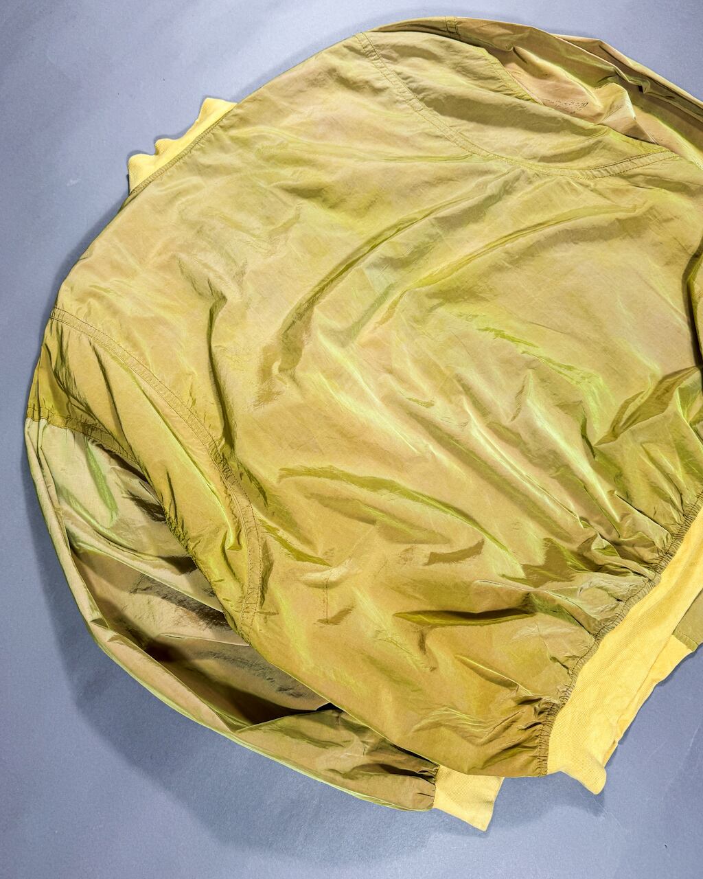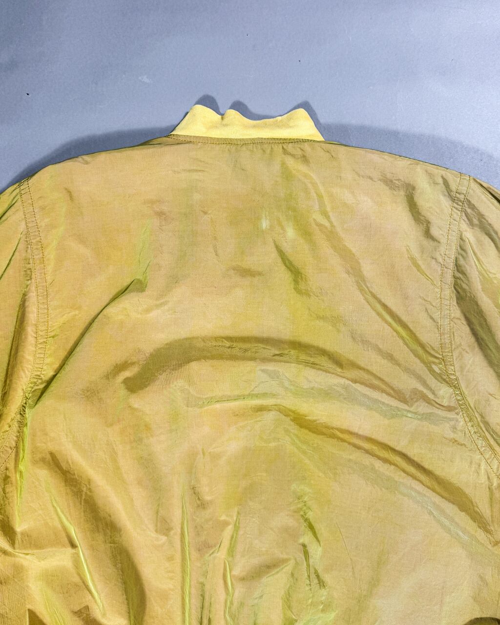 身幅たっぷりなワイドシルエットに右胸にプリントが施されています。色味もいなたさの残るゴールドカラー。