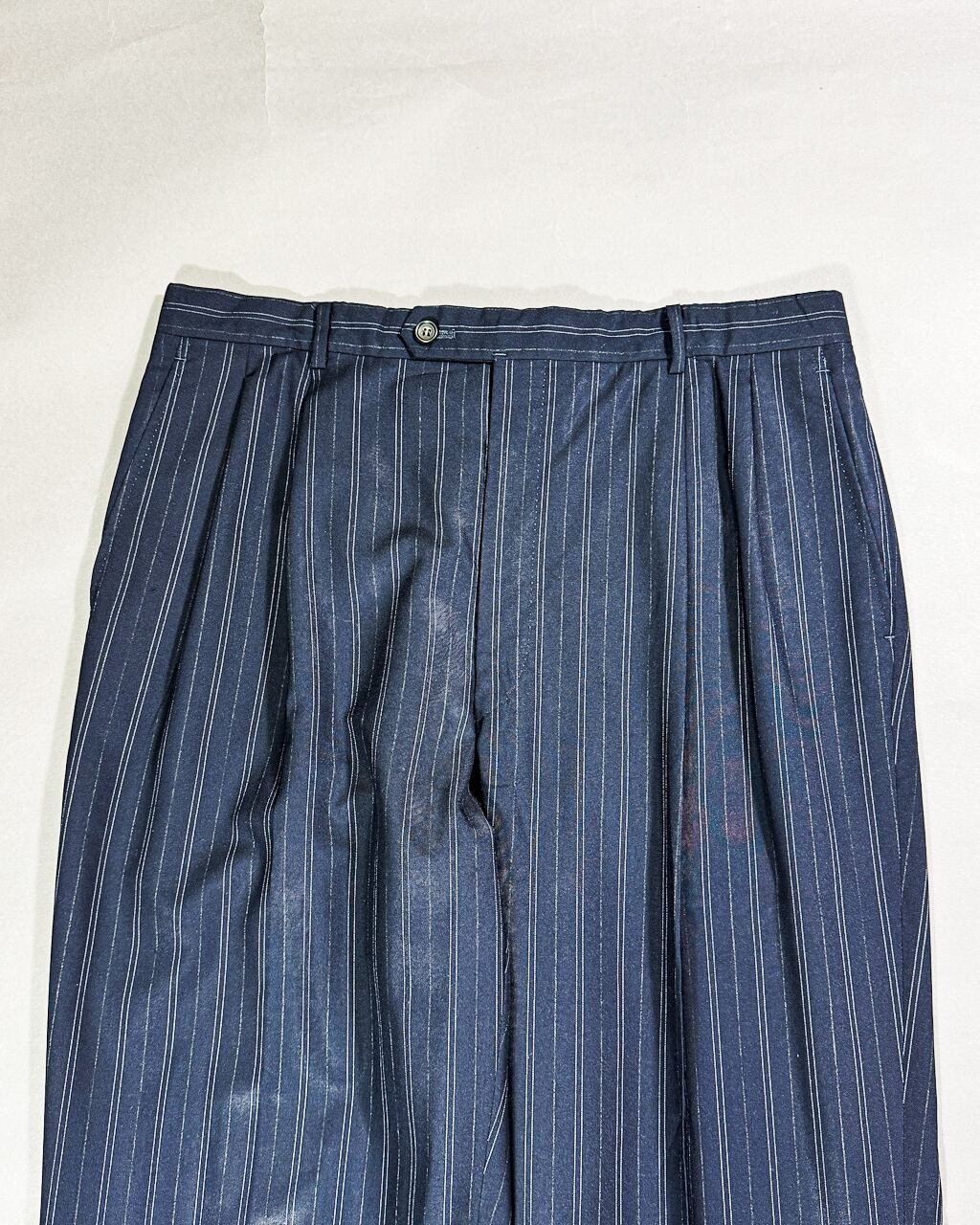 90's "Christian Dior" summer wool draped stripe wide slacks