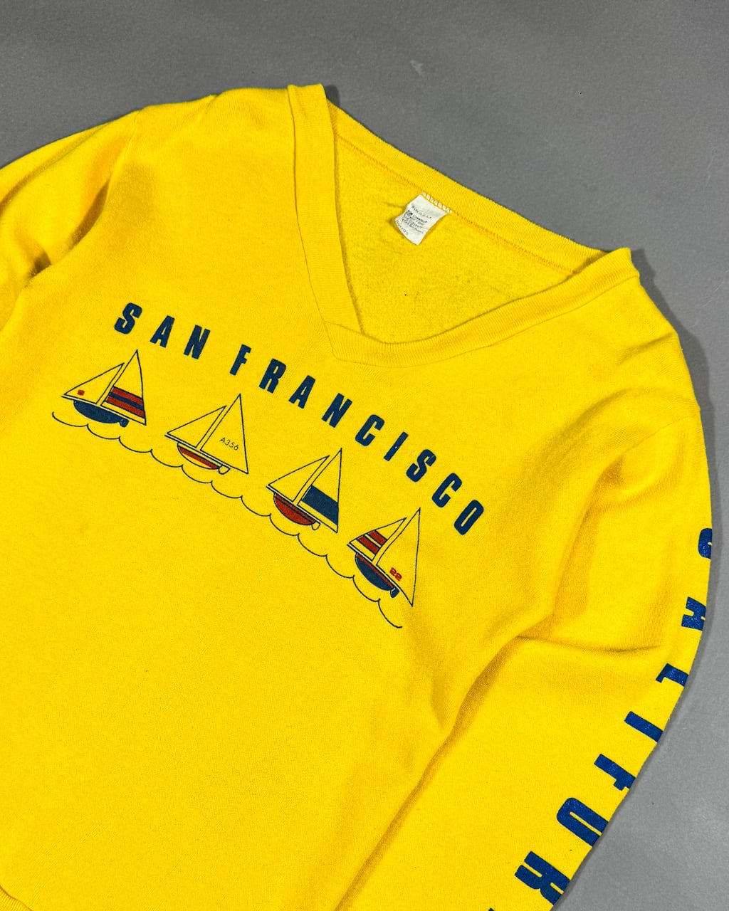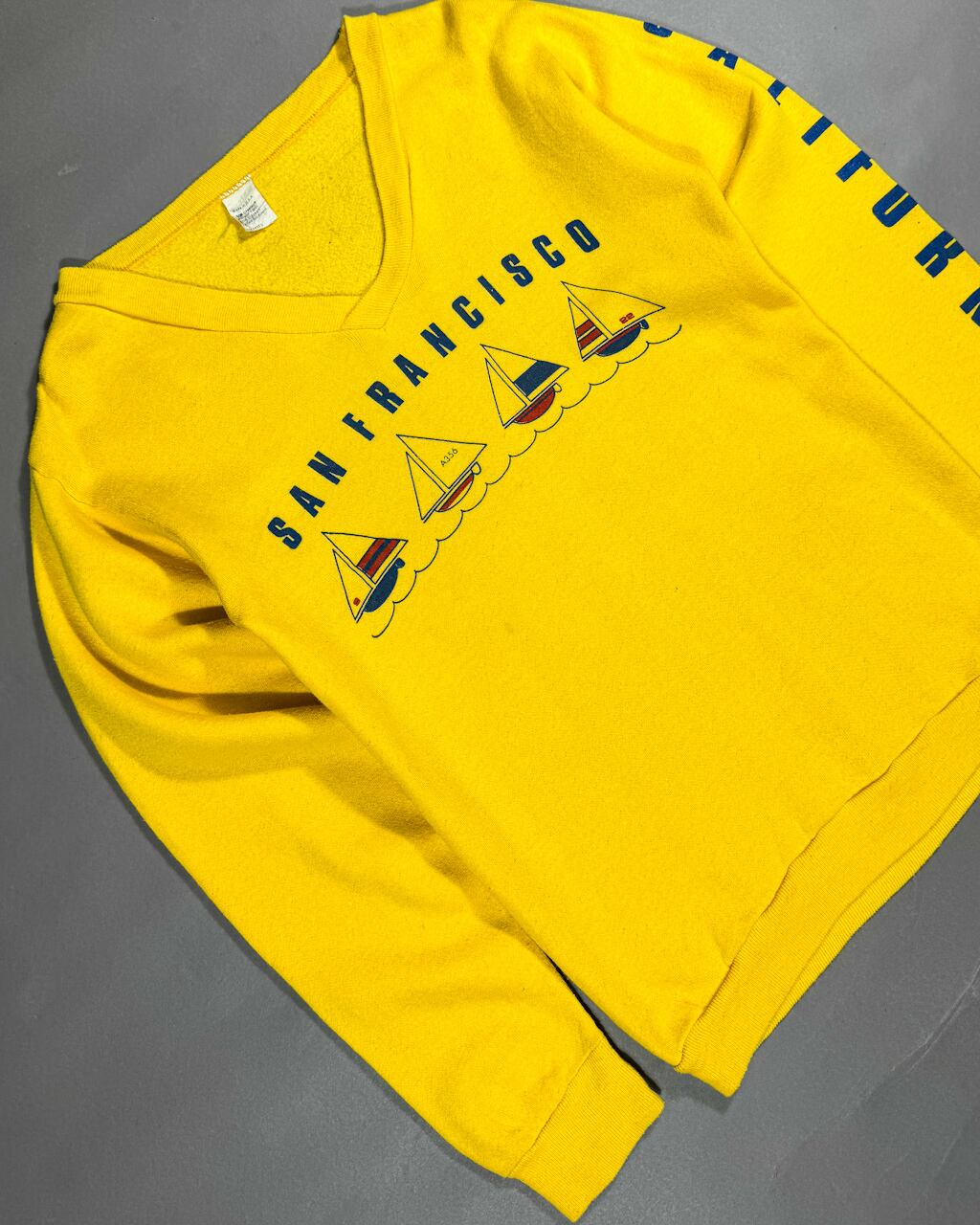 フロントに「SAN FRANCISCO」とヨットのグラフィック、袖に「CALIFORNIA」のプリントが入った程よく横ノリなアイテム。